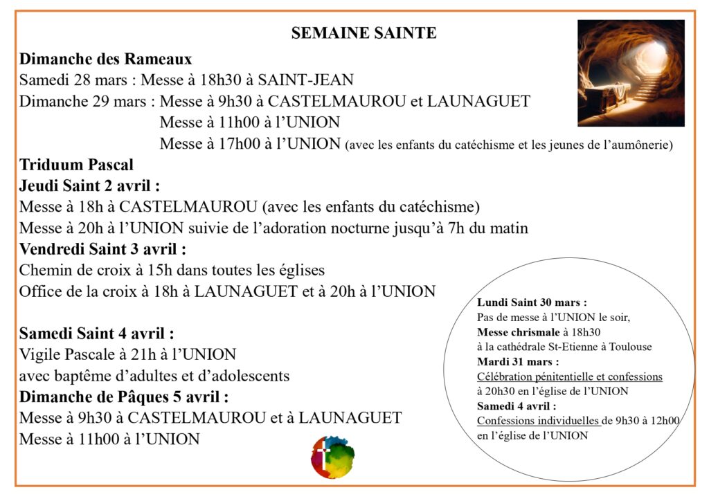 Horaires des messes pour la semaine sainte